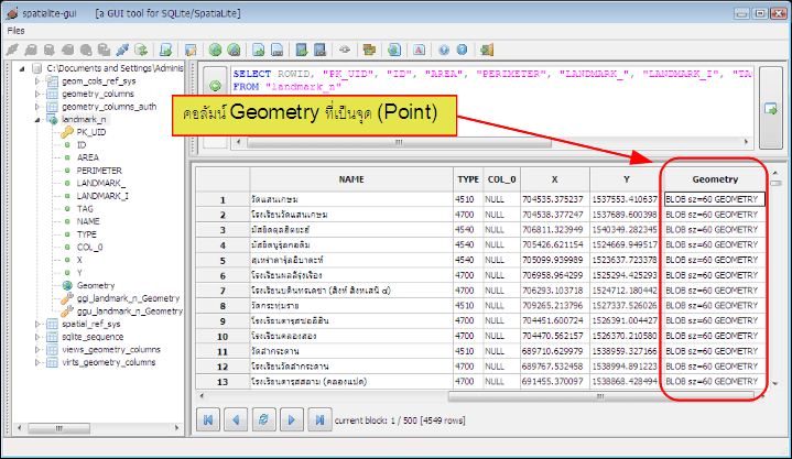 ทดสอบฐานข้อมูลด้วย spatialite-gis