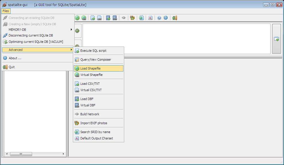 - จากนั้นใช้เมนู Files > Advanced > Load Shapefile