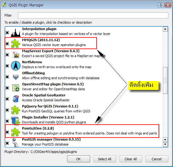 3. ต้องการ Plug-in ชื่อ “MMQGIS”เหมือนกับตัวบนคือต้องติดตั้งเพิ่ม