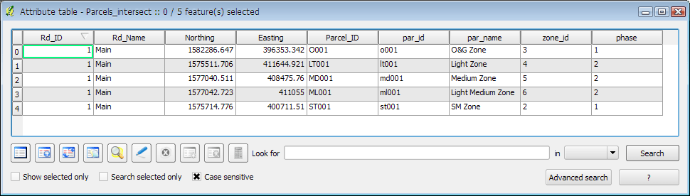 Attribute table ของเลเยอร์ถนนที่ตัดกับแปลงที่ดิน