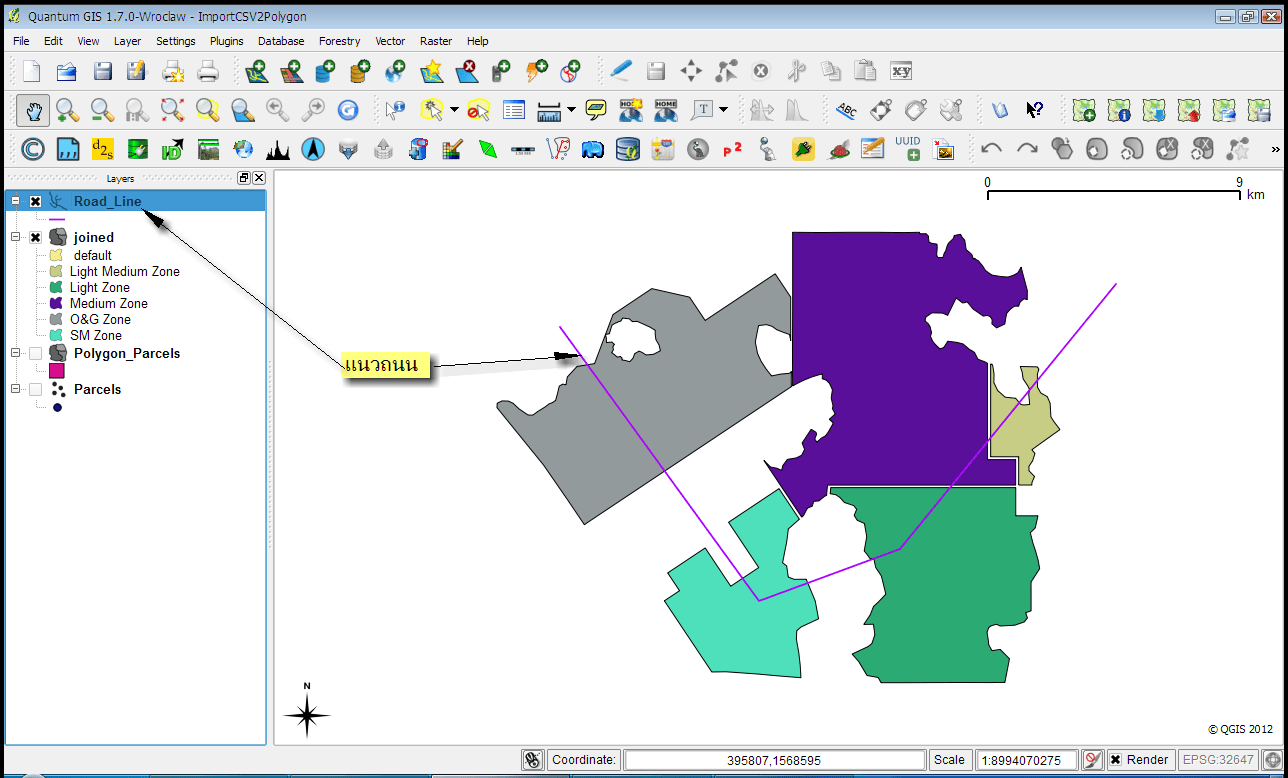การนำเข้าข้อมูลจากไฟล์ CSV เป็นลายเส้น Polygon